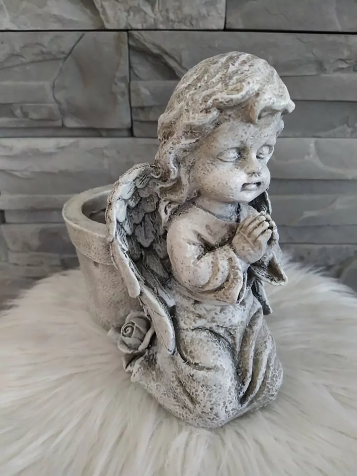 Anjelik je vhodná dekorácia na hrob. Soška má aj praktické využitie ako kvetináč, ktorý má anjelik na svojom chrbte, je sivobielej farby. Dekoráciou si môžte uctiť pamiatku všetkých zosnulých.