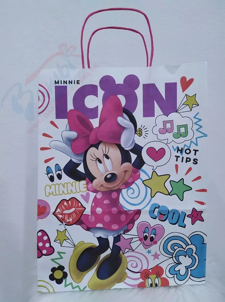 Darčeková papierová taška s detským motívom Minnie skvele slúži pri odovzdávaní darčeka.