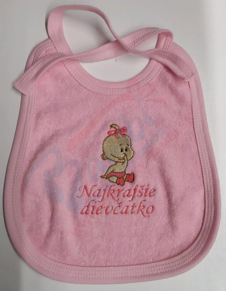 - Detský podbradník najkrajšie dievčatko ružový vyšívaný