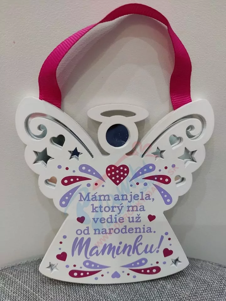 Potešte svojich blízkych maličkosťou, ktorá dokáže vykúzliť úsmev na perách a pohladiť na srdci. Na plaketke sa nachádza venovanie: Mám anjela, ktorý ma vedie už od narodenia. Maminku! Závesné plaketky majú slová plné lásky. Možno ich zavesiť na obľúbené miesto a mať ich tak neustále na očiach.