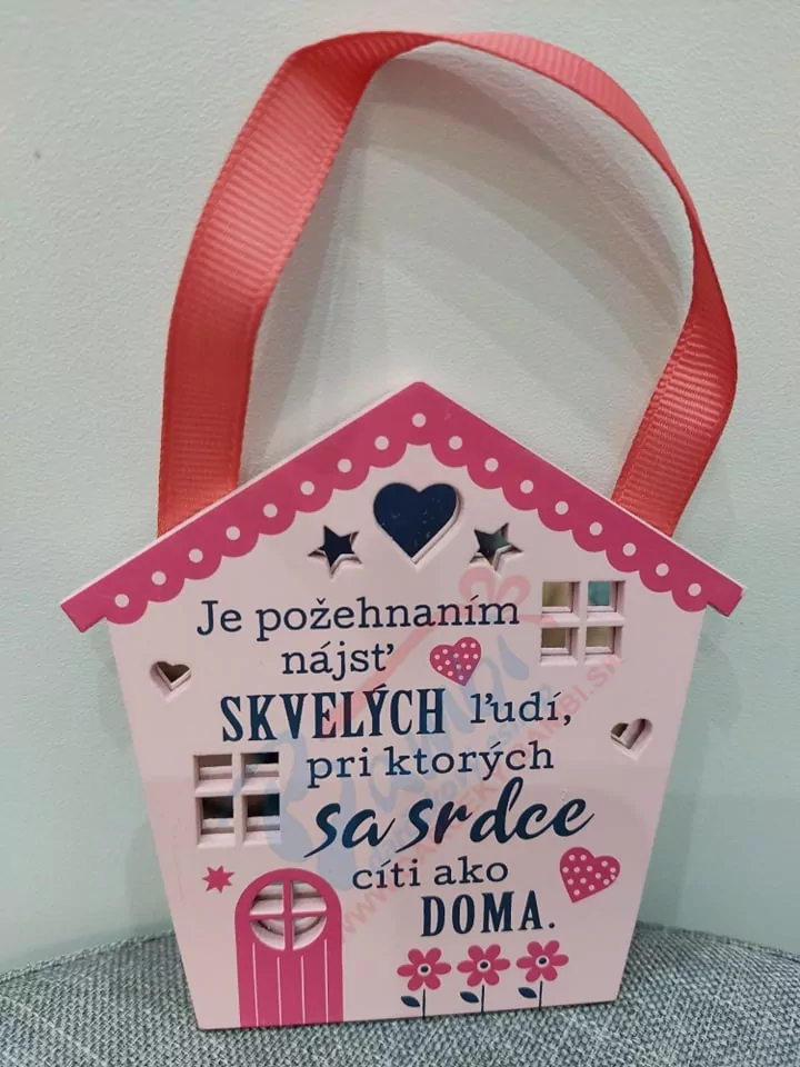 Potešte svojich blízkych maličkosťou, ktorá dokáže vykúzliť úsmev na perách a pohladiť na srdci. Na plaketke sa nachádza venovanie: Je požehnaním nájsť SKVELÝCH ľudí, pri ktorých sa srdce cíti ak DOMA. Závesné plaketky majú slová plné lásky. Možno ich zavesiť na obľúbené miesto a mať ich tak neustále na očiach.