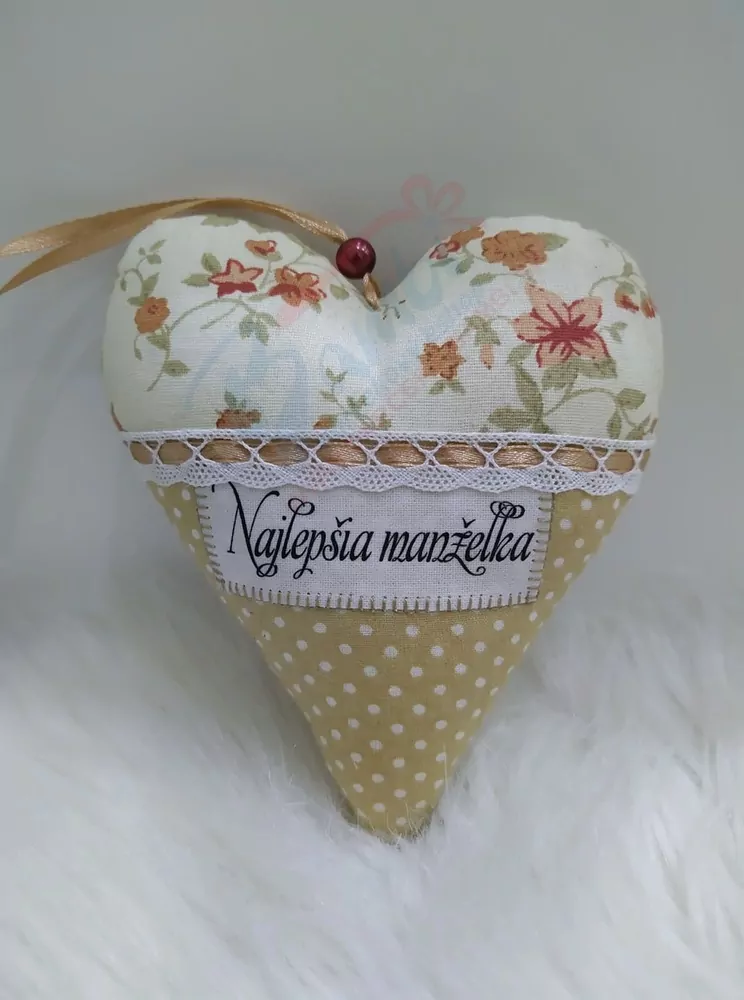 Handmade hnedé srdiečko Najlepšia manželka - ručne šité.