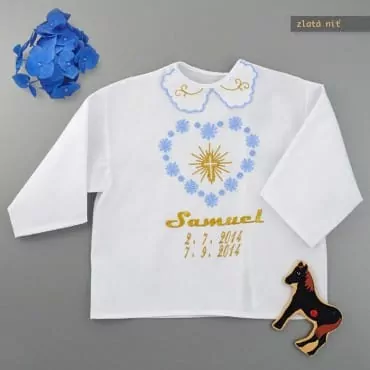 - Krstová košieľka kríž v srdci 2-modrá exkluzívna