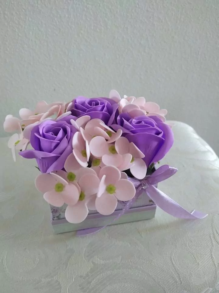 Živé kvety sú krásne ale potešia oči iba 3 dni. Mydlové boxy sú to pravé čo hľadáte. Každý jeden kus je originál a mydlový box Vám nemôže vyschnúť.
