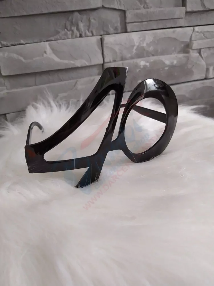 Štýlové narodeninové párty okuliare 40 čierne. Prekvapte oslávenca netradičným ale zároveň vtipným darčekom v podobe okuliarov, vďaka ktorým oslávenca nikdy neprehliadnete. Okuliare sú bez skiel. Materiál: Plast