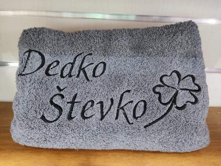 Osuška s vyšitým nápisom Dedko Števko, je vyrobená z bavlny. Je veľmi mäkká a vysoko savá z príjemne mäkkého materiálu. K farbeniu boli použité farbivá najlepšej kvality, ktoré zabezpečujú trvalosť farby hoci aj po viacerých praniach.