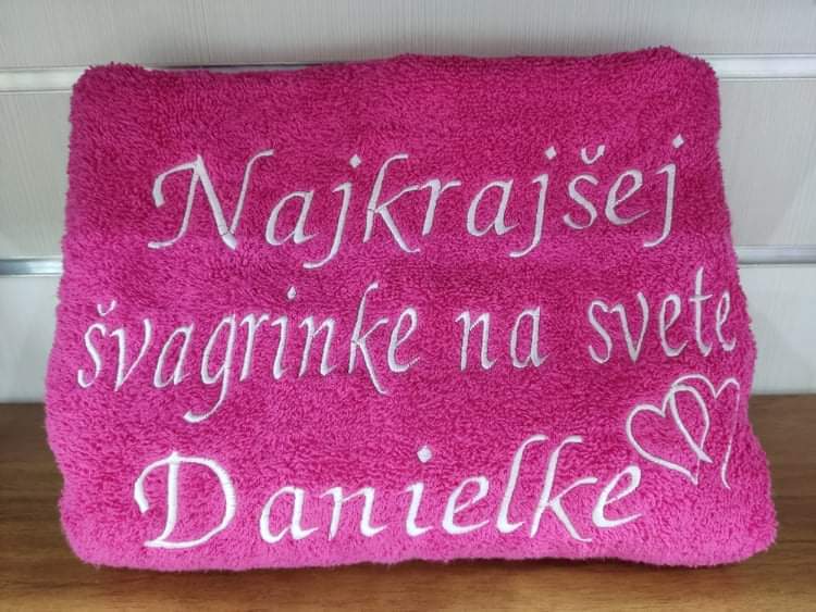 - Osuška s nápisom Najkrajšej švagrinke na svete Danielke
