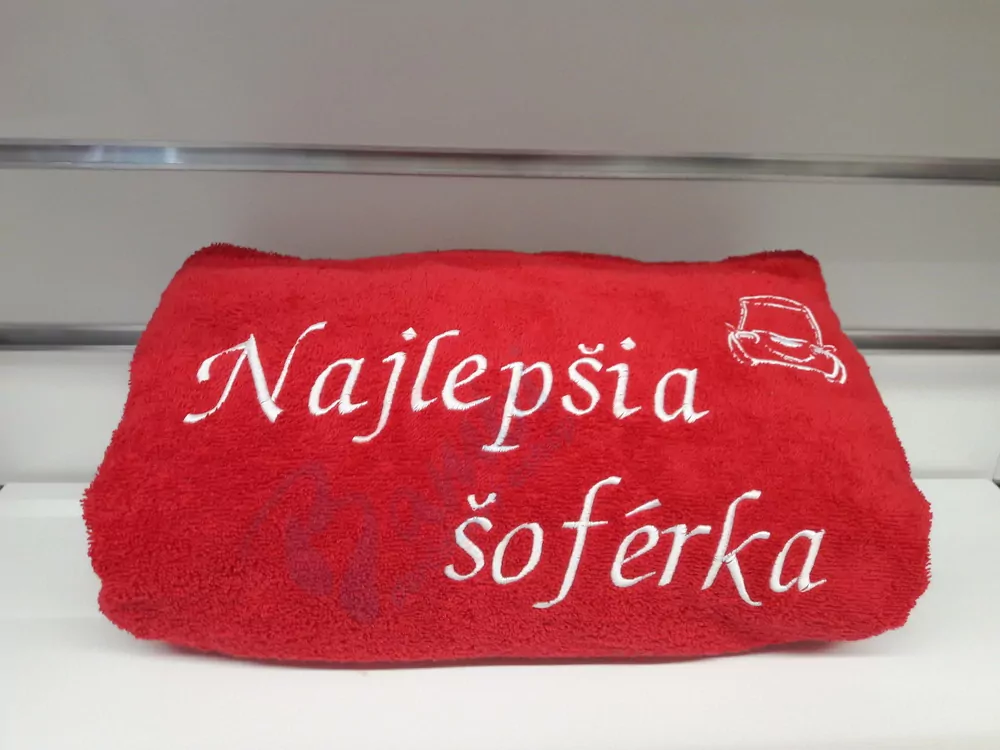 - Osuška s nápisom Najlepšia šoférka