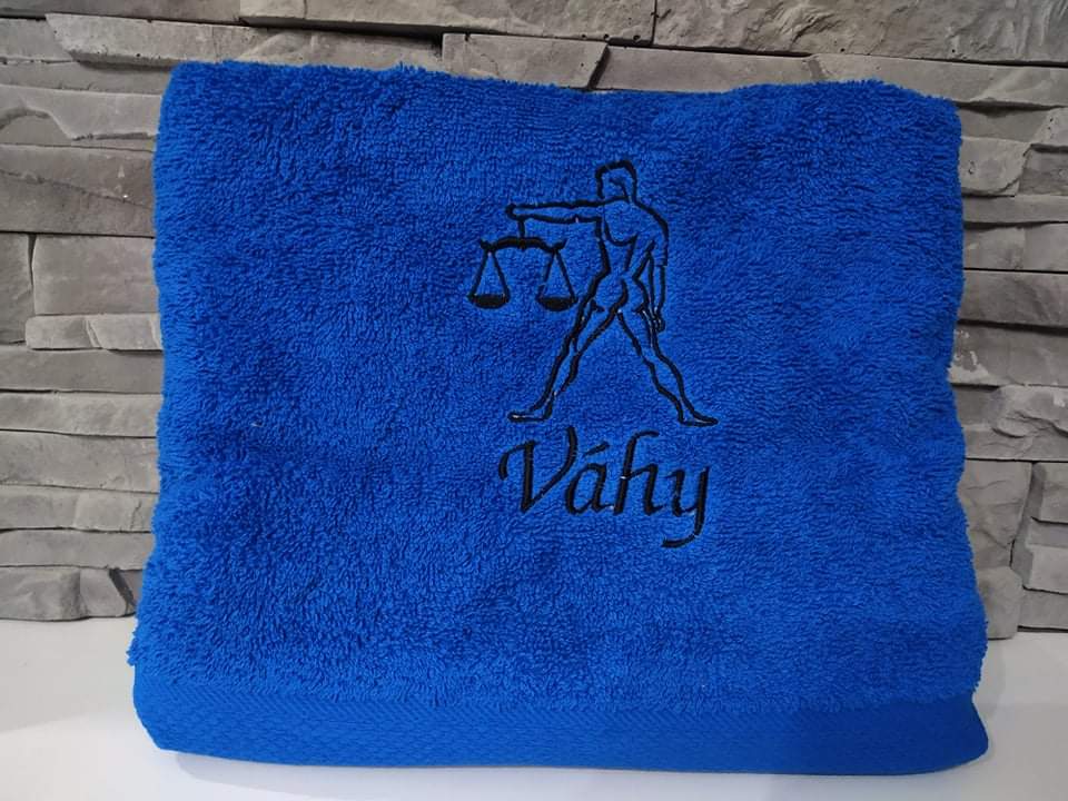 Osuška s vyšitým znamením Váhy, je vyrobená z bavlny. Je veľmi mäkká a vysoko savá z príjemne mäkkého materiálu. K farbeniu boli použité farbivá najlepšej kvality, ktoré zabezpečujú trvalosť farby hoci aj po viacerých praniach.
