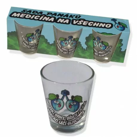 Mozog, srdce, brucho i pľúca, všetko lieči slivovica. Štamprlíky s týmto vtipným nápisom a zábavným motívom sliviek doma určite využijete. Predstavujú ideálny darček pre každého milovníka chuti tradičného slovenského alkoholu. Dobrá slivovica nemôže byť zlá. V zdraví aj v chorobe, z týchto originálnych pohárikov zachutí naozaj každému. Chystáte párty s priateľmi, na ktorej nemôže chýbať kvalitný alkohol? Sada poldecákov Liek na všetko je presne to, čo potrebujete.