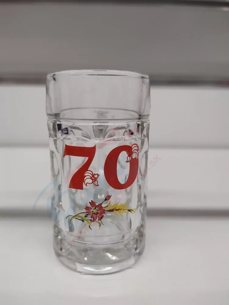 Moderný a štýlový štamprlík na alkohol k 70 červený , ktorým zaručene potešíte každého, kto akurát oslavuje svoje životné jubileum.