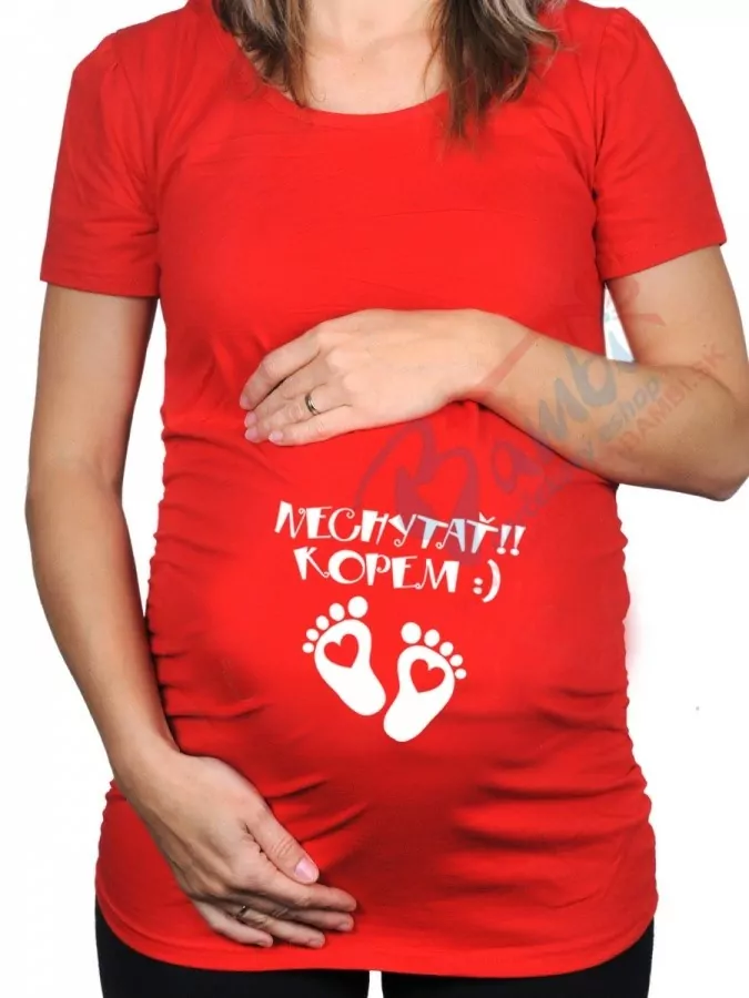 - Tehotenské tričko s nápisom Nechytať kopem červené