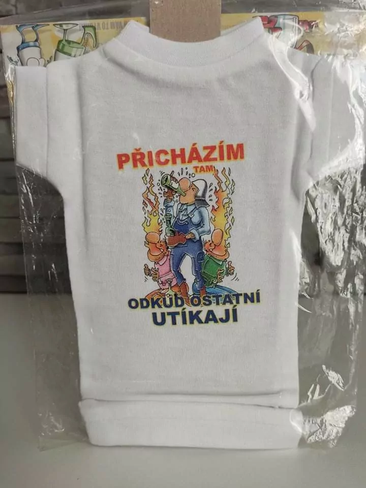 Darujete fľašu a zdá sa vám príliš obyčajná? Tričko na fľašu nie je len obyčajné tričko, je potlačené humorným nápisom: Přicházim tam odkud ostatní utíkají, ktorý priamo vystihuje príležitosť ku ktorej je určené.