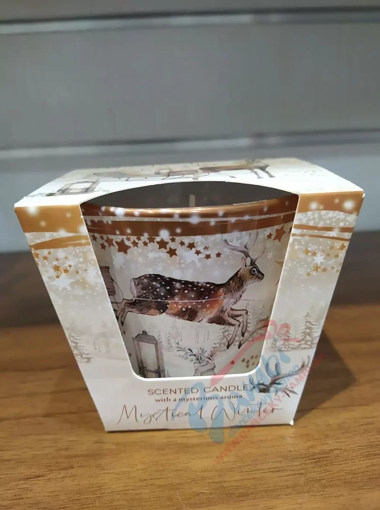 Krásna vianočná sviečka v skle s obrazom Sobov, ktoré ťahajú sane. Sviečka je uložená v darčekovej krabičke. Spravte radosť sebe alebo svojim blízkym touto krásnou sviečkou, ktorá vám dokonale prevonia váš domov a navodí tu pravú vianočnú pohodu.