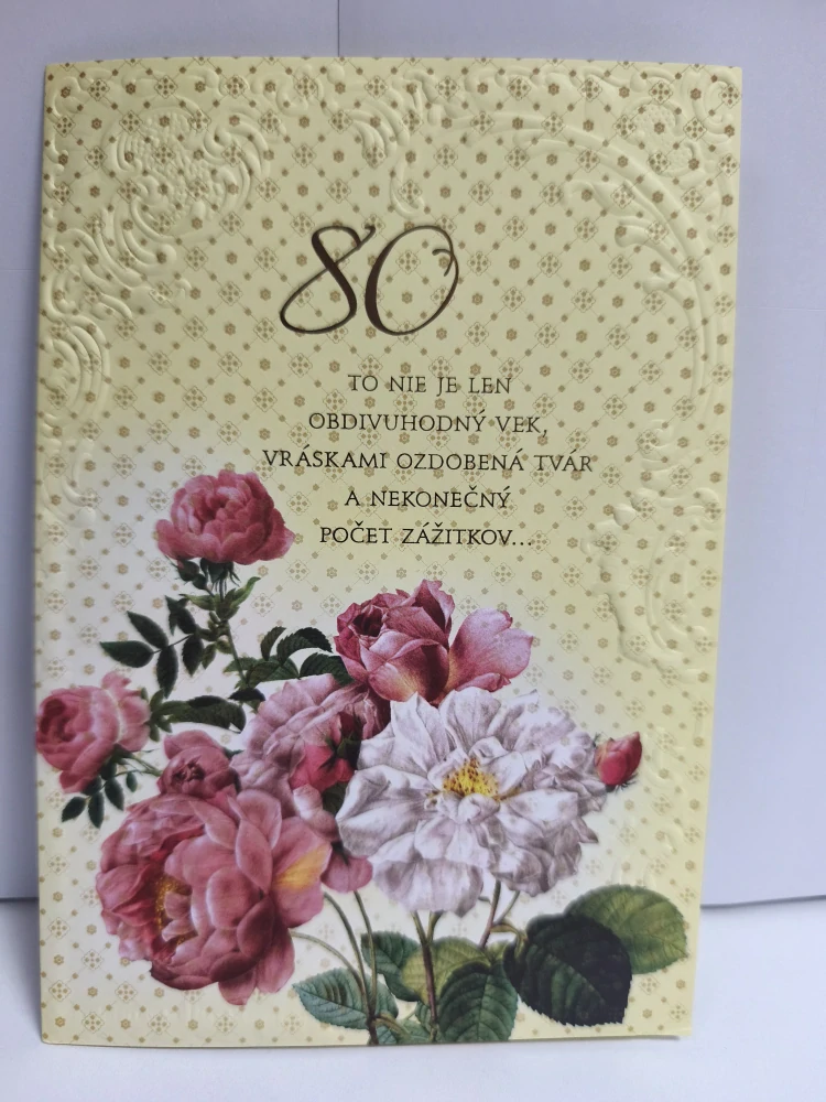 Blahoželanie k 80. narodeninám kvetySkladom2,40 EUR/ ks1,95 EUR bez DPH