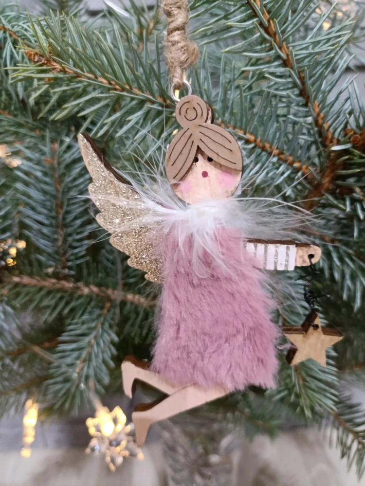 Drevený anjelik na zavesenie s kožušinkou je dekoratívny predmet, ktorý spája tradičný drevený materiál s jemnosťou kožušiny, čo vytvára príjemný a útulný vzhľad. Tento anjelik je ideálnym doplnkom do interiéru, najmä počas vianočných sviatkov, ale aj ako celoročná dekorácia. Kožušina je na jeho oblečení čo dodáva anjelikovi elegantný a teplý vzhľad. Zavesený môže byť na strome, okne alebo na stene, kde prinesie kúsok prírodnej krásy a pokoja. Pri objednávke si vyberte variantu.