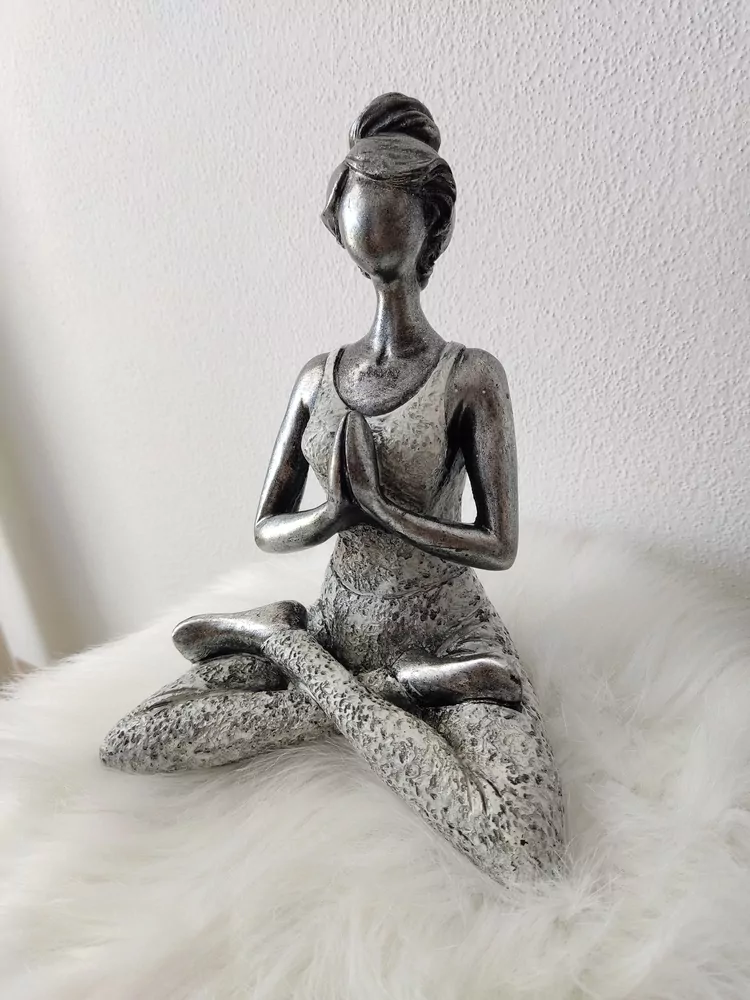 Nádherná potavička žienky, ktorá cvičí jogu, z kvalitného materiálu - polyresin, v strieborno - bielom prevedení, bude milou dekoráciou a úžasným doplnkom v každom interiéri - či už doma, v práci, v štúdiu alebo v kaviarničke.