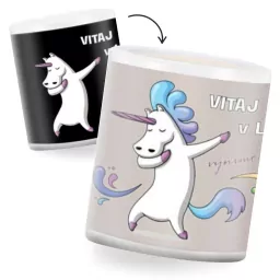 Meniaci sa hrnček - Vitaj v lige. Jedinečné hrnčeky, ktoré v správny moment odhalia svoju pravú tvár. Zdanlivo tradičné hrnčeky sú výnimočné svojimi motívmi, ktoré sa menia po naliatí horúceho nápoja. Behom chvíle zahriaty hrnček vtipne zmení význam textu či odhalí skrytý obrázok, aby po vychladnutí opäť skryl svoju identitu.