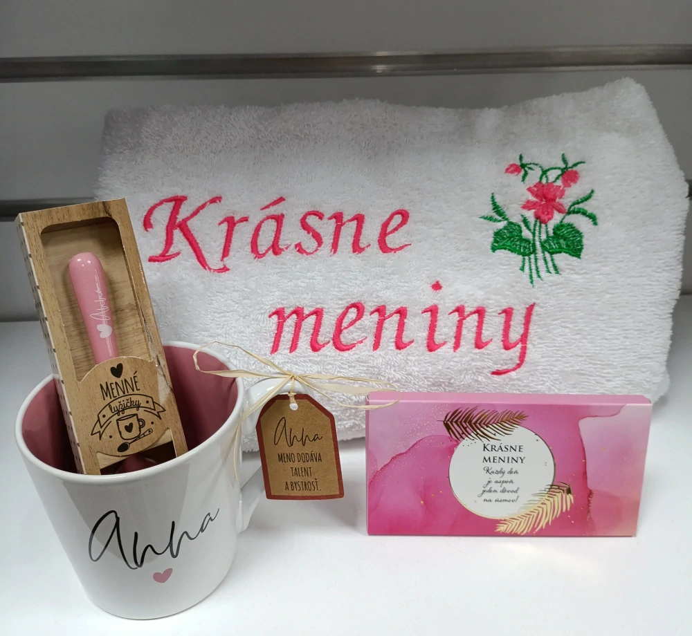 - vyšívanú osušku s nápisom Krásne meniny