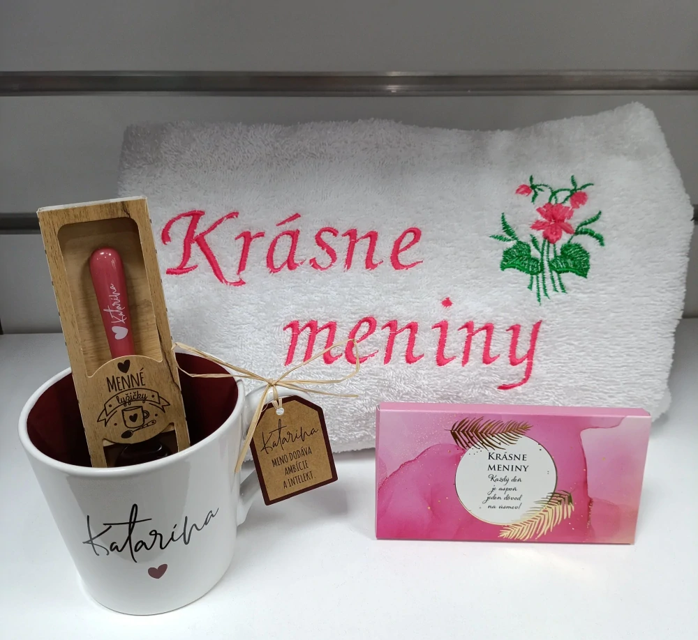 Potešte Vašu Katarínku k meninám milou darčekovou sadou, ktorá je vyskladaná tak, aby každý darček v nej našiel u obdarovanej využitie.