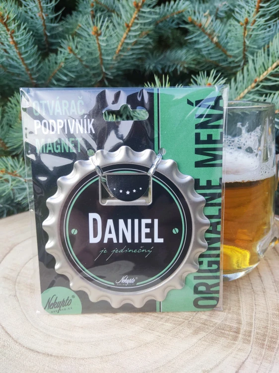 Praktická vychytávka pre všetkých milovníkov piva! Popivník, v ktorom sa ukrýva aj otvárač na pivo a magnet. Tento darček perfektne využijete na oslavách, či letných grilovačkách. Jedinečné dizajny s vtipnými opismi potešia aj ako drobný darček pre partnera, otecka, či kolegu. Podpivník je kovový a nachádza sa na ňom nápis: Daniel