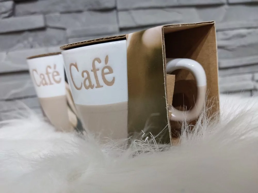 Vychutnajte si vo dvojichi dobrú kávičku z milých šálok. Set obsahuje dve šálky s nápisom Café. Šálky sú vhodné do umývačky riadu aj do mikrovlnnej rúry. Pri objednávke si prosím nezabudnite vybrať variantu šálok, o ktoré máte záujem: béžové/ alebo čierne.