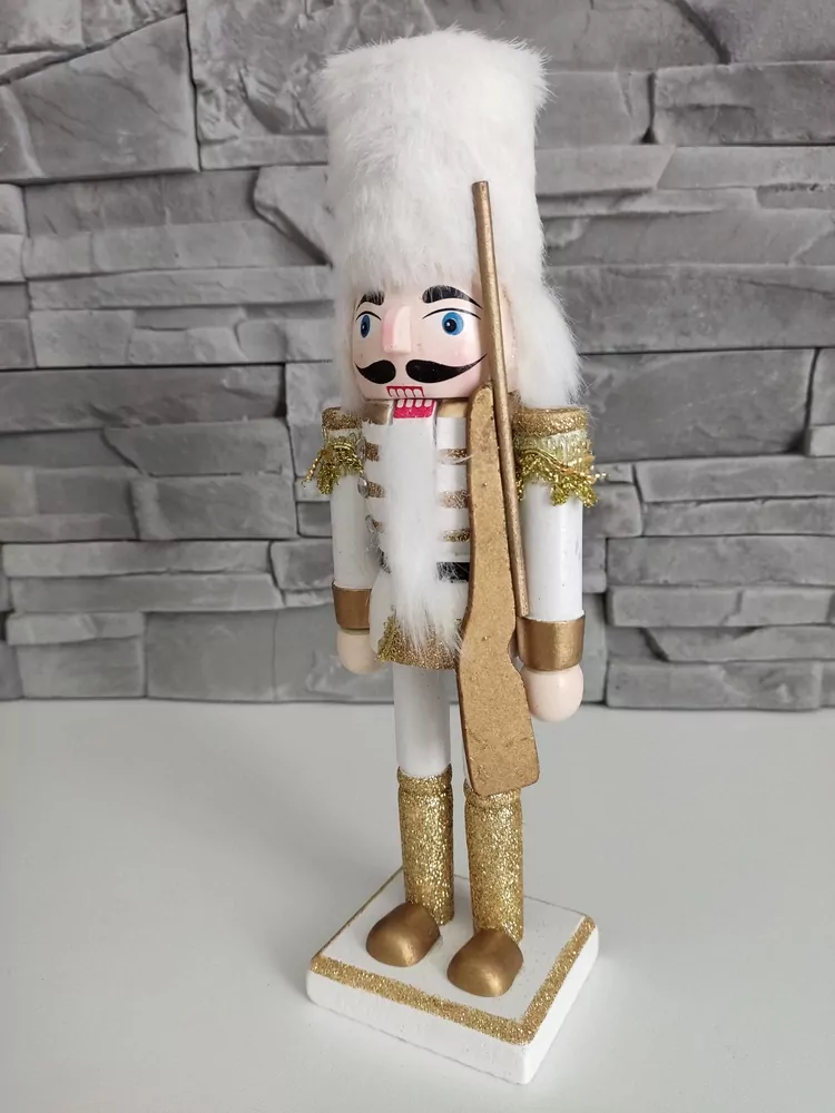 Rozprávková postavička v podobe vianočného Luskáčika je krásnou vianočnou dekoráciou, ktorá doladí a dokonalo podčiarkne rozprávkovú vianočnú atmosféru vo Vašom interiéri. Či už ho postavíte do obývačky, na poličku či na parapetu alebo použijete do aranžmánu, všade bude robiť radosť. Drevený Luskáčikovia sú plne funkčný. Stačí, ak na zadnej strane pridvihnete drevenú páčku, Luskáčik otvorí ústa a vy mu tam kľudne môžete vložiť oriešok na rozlúsknutie. Veľmi čarovné a nielen pre detičky! Uvedená cena je za 1ks luskáčika - pri objednávke si prosím vyberte variantu, či máte záujem o farebného/bieleho/čierneho/alebo zlatého Luskáčika.